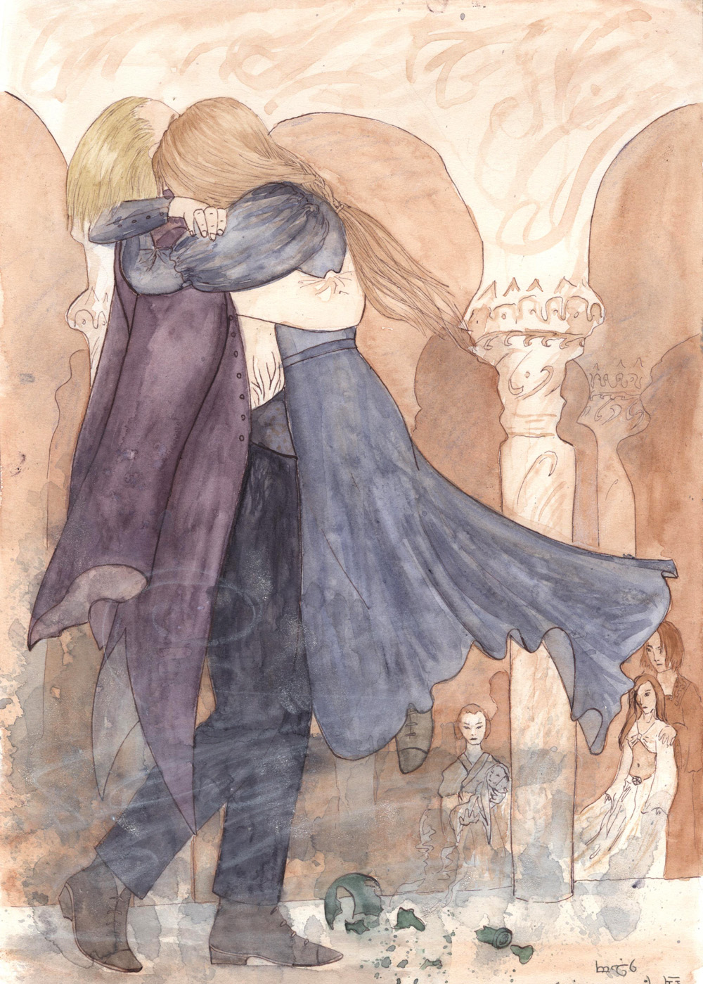 Stattdessen habe ich aber wieder ein Aquarell fertig gestellt, diesmal ist es eine Szene aus “Castle in the Air” von Diana Wynne Jones, einer Fortsetzung von “Das wandelnde Schloss”.