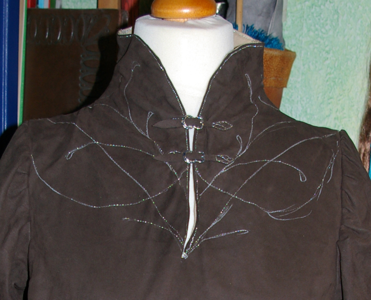 Dann habe ich endlich mal die Ziernähte auf der Braunen Velourtunika gemacht, allerings sind die Vorzeichnungen noch nicht ausgewachen und die sind zum Teil etwas chaotisch…