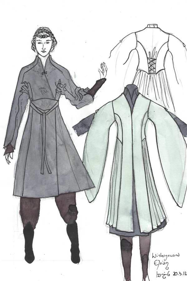 Ich habe vor allem Hinten sowohl die Ornamente von Elrians Schild als auch von ihrem Wappen wieder aufgegriffen.
