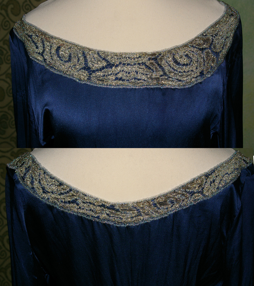 Gestern ging, von mir selber unbemerkt, ein weiteres Projekt zu Ende, worüber ich einerseits froh (endlich fertig), andererseits traurig (was soll ich denn nun machen?) bin: Der Perlenkragen von meinem Festtagsunterkleid ist fertig.