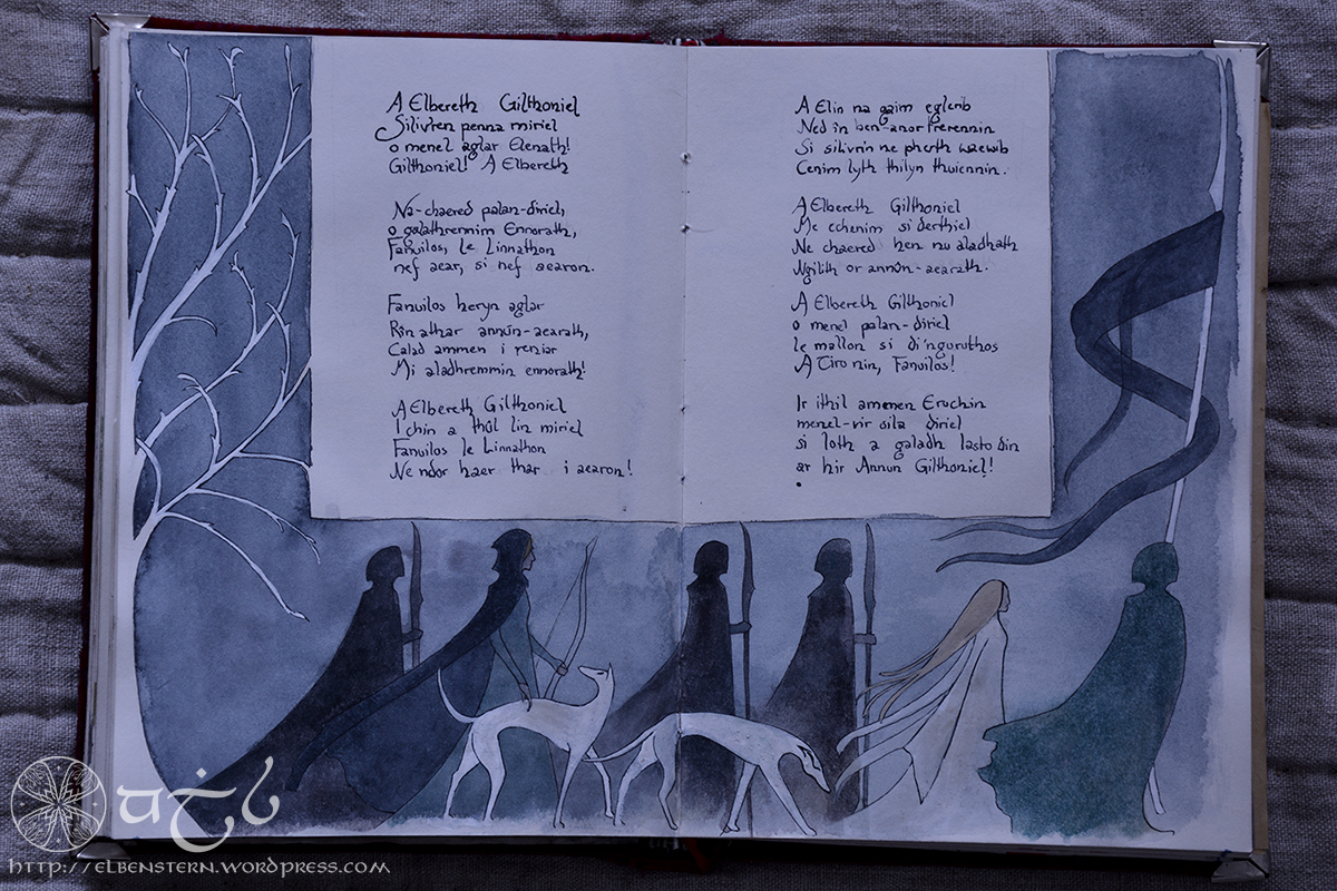 The second one is a compilation from all the A Elbereth Gilthoniel stanzas from both the books and the movies. Some of them I edited to fit the four-line pattern.